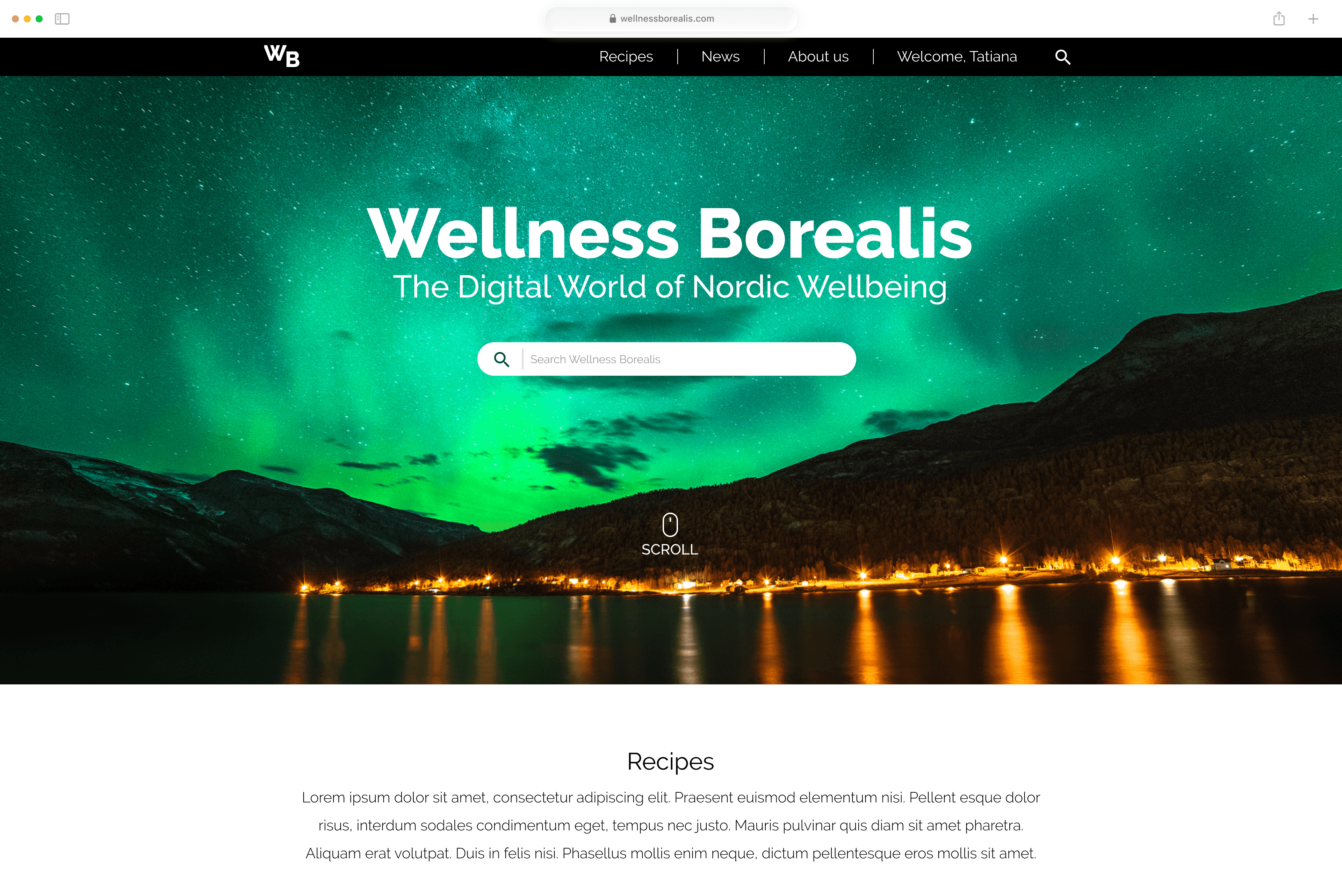 Create a homepage that encourages visitors to focus on the pure, clean, and natural way of living in the Northern countries, while offering individualized content, aesthetics, and clear navigation.